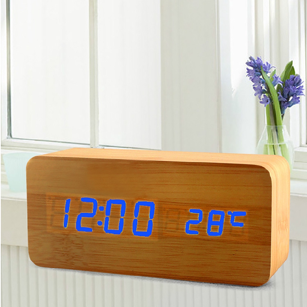 Modern Wood Digital Led Desk Alarm Clock Bedside Table Clock Calendar Mini Wood Sounds Control Clock Buy At A Low Prices On Joom E Commerce Platform
